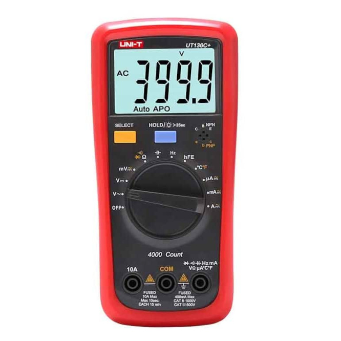 DIGITAL MULTIMETER, 3.5 DIGIT, AUTO-RANGING, 500VAC/DC, 10AAC/DC, 40M-OHMS, -40~1000DEG C, 10MHz FREQ. DIODE TEST AND DUTY CYCLE