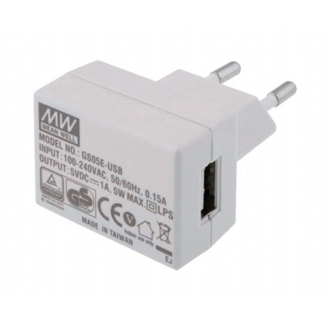 POWER SUPPLY W/M I=220 O=5V 1A USB-TYPE-A