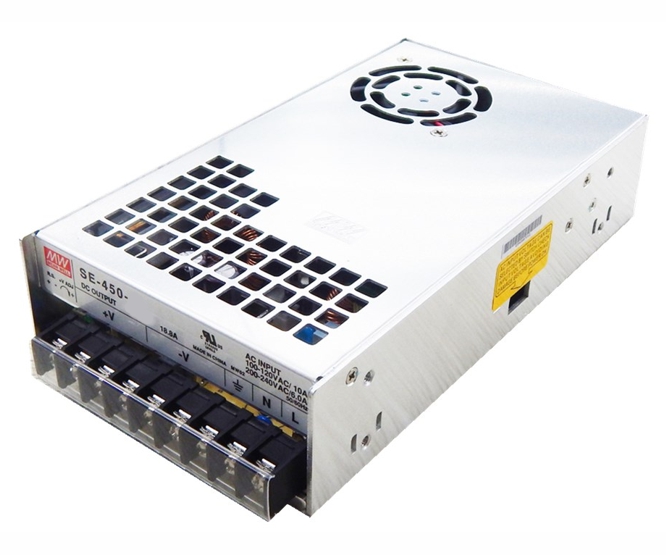 450 WATT SINGLE OUTPUT ENCLOSED MEANWELL SWITCHING POWER SUPPLY, REMOTE SENSE,
