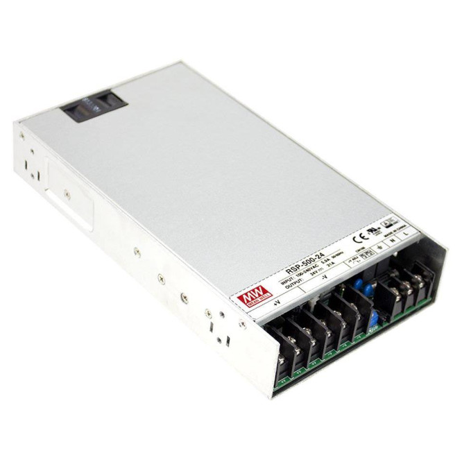 500 WATT ENCLOSED SWITCHING SINLGE OUTPUT POWER SUPPLY, INPUT: 85-264VAC OUTPUT: 24VDC @ 21A. WITH PFC CORRECTION.