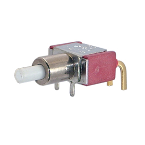 PUSH BUTTON SWITCH, MINIATURE, SPDT, ON-MOM, RIGHT ANGLE, PCB MOUNT, 1-3 CLOSE , PUSH 1-3 OPEN 1A @ 120VAC / 28VDC