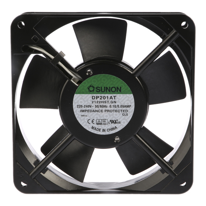 COOLING FAN, AXIAL, 120x120x25, 220VAC, SLEEVE BEARING, 2000RPM, 64CFM , 0.1A, 19W, 43dBA, WITH TERMINALS