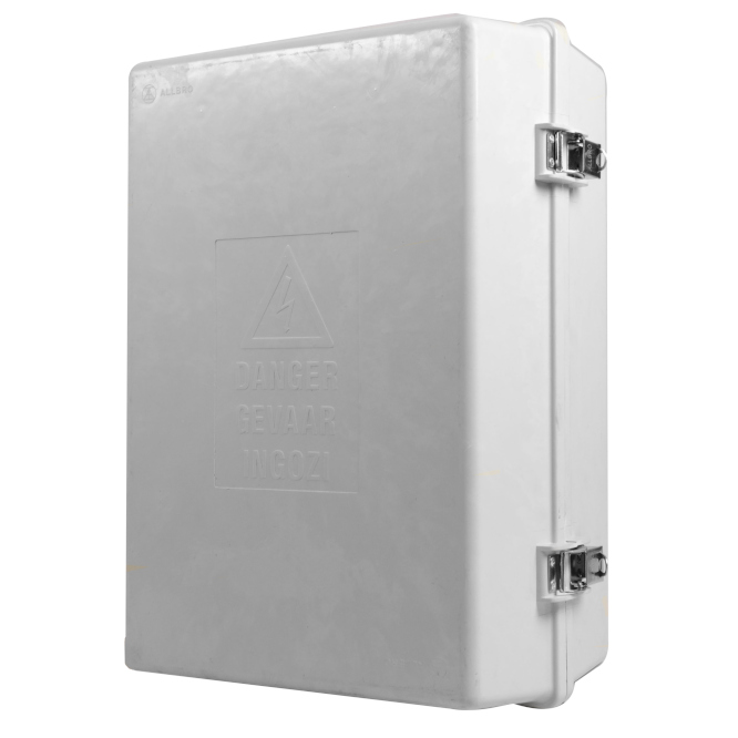 ALLBROX ENCLOSURE LOCKABLE HINGED WITH B/B AND PB 480x343x210mm