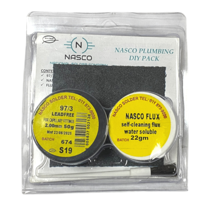 PLUMBER REPAIR AND CONNECTION PACK, LEAD FREE 2mm SOLDER AND SELF CLEANING FLUX INCL BRUSH AND SANDPAPER , 97% TIN AND 3% COPPER. 50g SOLDER WIRE & 22g FLUX