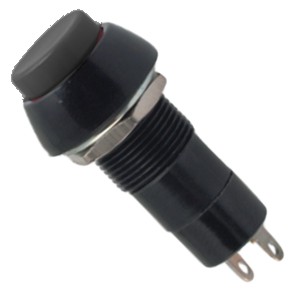 19mm ROUND MOMENTARY NORMALLY OPEN PUSH TO CLOSE SWITCH, SOLDER TERMINALS INTERNAL HEIGHT=30mm , PANEL HOLE=12mm