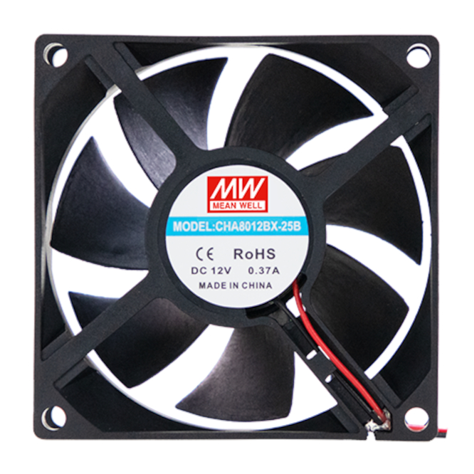 AXIAL COOLING FAN DUAL BALL BEARINGS 80x80x25mm 12VDC 0.23A. 3500RPM, 46CFM, 37dBA,